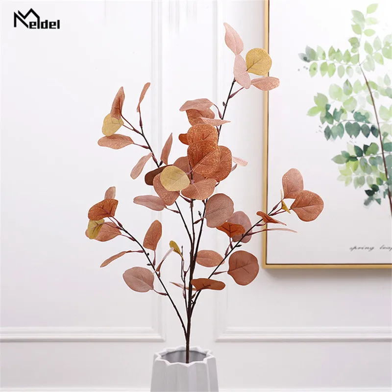 Мелдель искусственные листья ветка Ретро зеленый шелк эвкалипта оставить для домашнего декора свадебные растения искусственная ткань листва декор комнаты