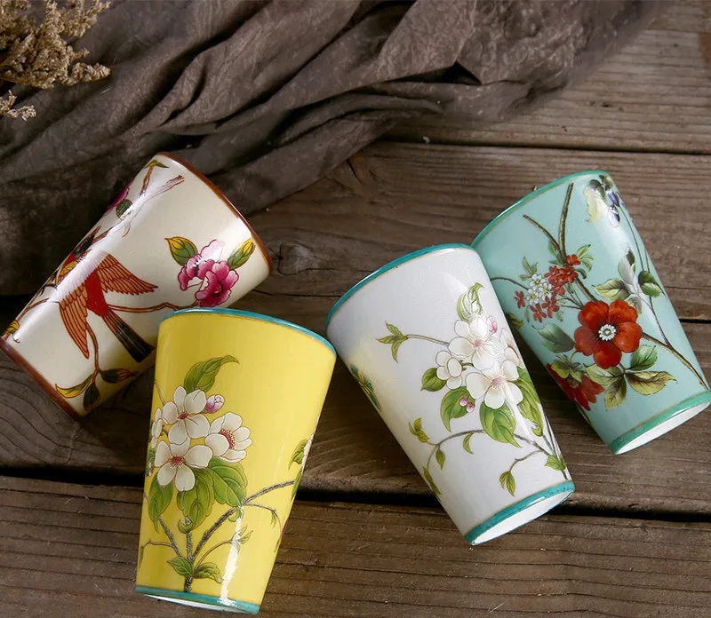 Ванная комната чашки для полоскания китайские керамические материалы цветок и птица пара зубных щеток чашки пасторальный Стиль Свадебный подарок бесплатная доставка