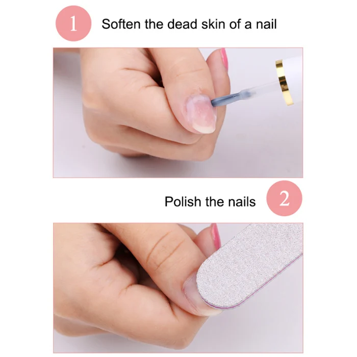 Смягчающее масло:Нанесите смягчающее масло перед нанесением лака для смягчения омертвевшей кожи на края ногтей, не повреждая кожу.