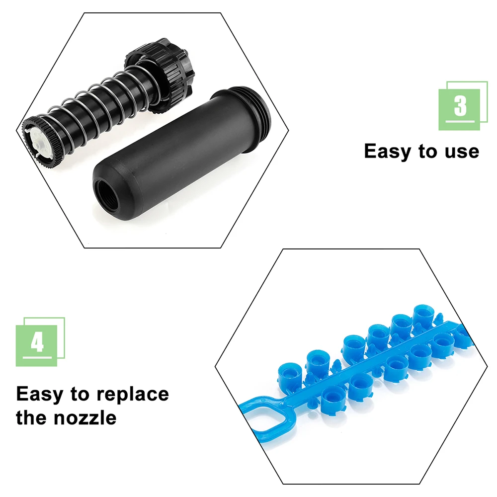 5. Весь круг и регулируемый угол распыления интегрированы в одно тело. Регулировка верхнего угла составляет 40 ° ~ 360 °. Эксплуатация проста, а Замена насадки удобна.
