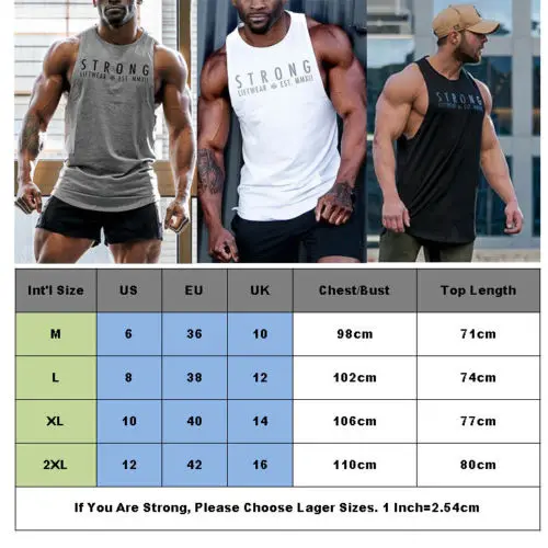 Мужская майка без рукавов, Спортивная майка для фитнеса! Высокое качество и абсолютно новый 100% Основной цвет: как на картинке Новинка в моде Материал:Смесь хлопкаВ комплект входит: Топ 1 шт. Таблица размеров: