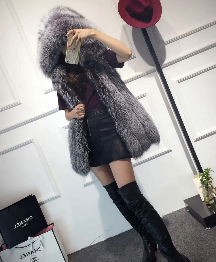9 цветов, S-3XL, зимний, теплый, искусственный Лисий мех, толстый, женский, повседневный жилет, женский, открытый, стежок, кардиган с капюшоном, пальто