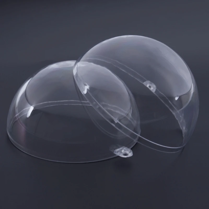 Прозрачные Рождественские шары разделены на две части, чтобы их можно было одевать и украшать.