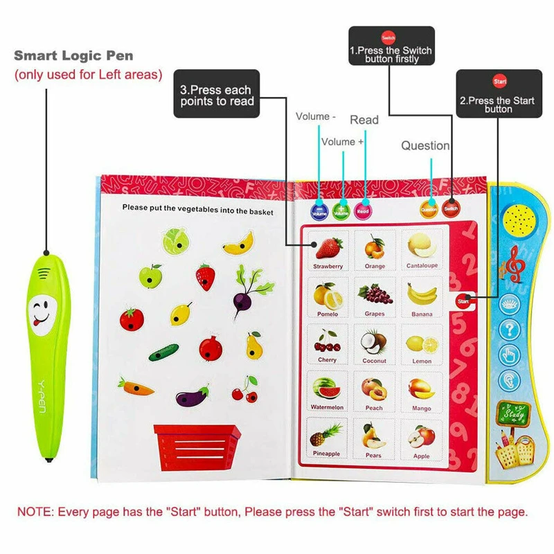 Богатая информация-комплексная Y-BOOK делает обучение веселым, включает в себя 9 обучающих мероприятий, 10 обучающих страниц, Английский алфавит, обычные фрукты, транспортное средство, словесность, классические детские стихи, ценим, простые цифры, животный зоопарк, название человека, забавная история. Богатый содержание может выучить различные виды познаний. Лучшая книга для раннего чтения!