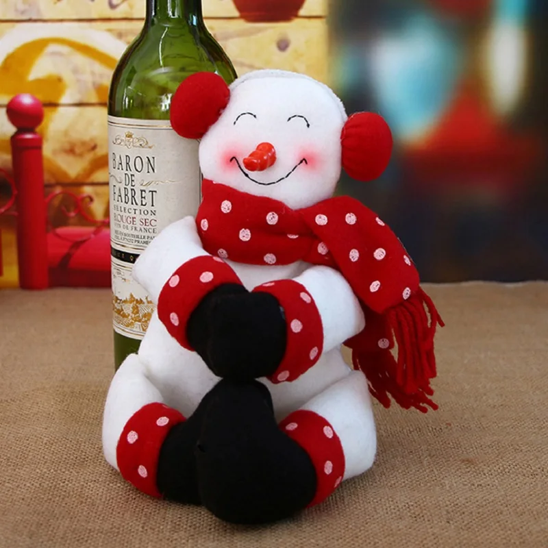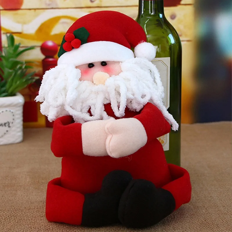 Санта Клаус Снеговик держится крышка для бутылки с красным вином Рождественское украшение бутылки шампанского мешок вечерние Ensemble de bouteilles de vin