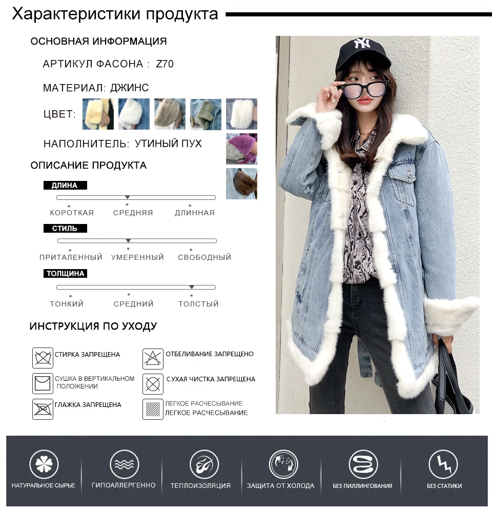 Отзывы о Женские зимние джинсовые куртки норковые женские пуховики на утином пуху