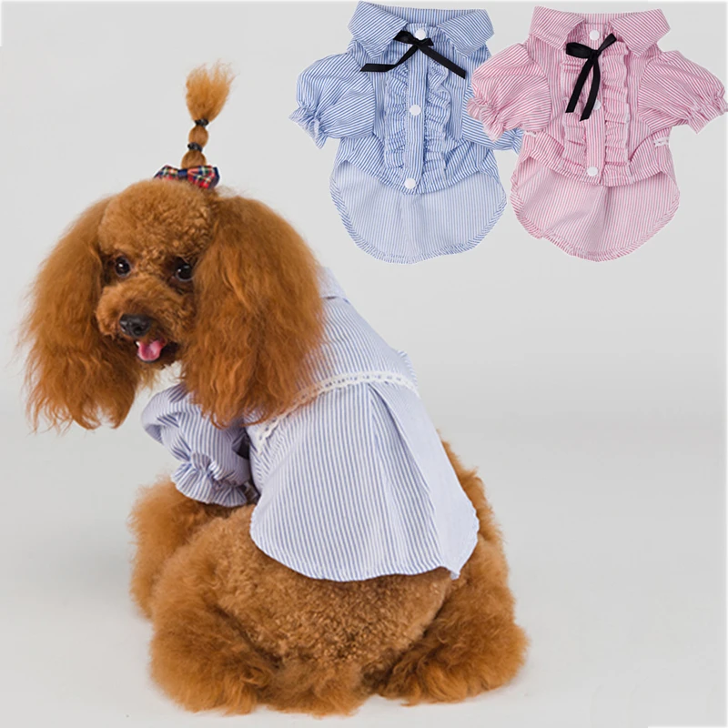 Одежда для кошек, маленькая Корейская рубашка в полоску, милая модная одежда для домашних животных