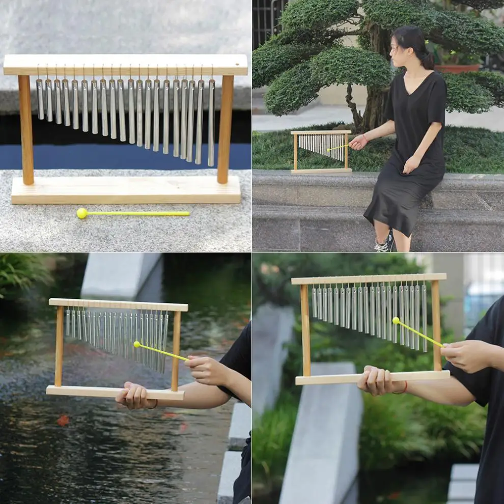 Отзывы о Bells 20 Tone Wind Chimes Silver Standing Wooden Frame Playing Chime with Stick Instrument Decoration |
