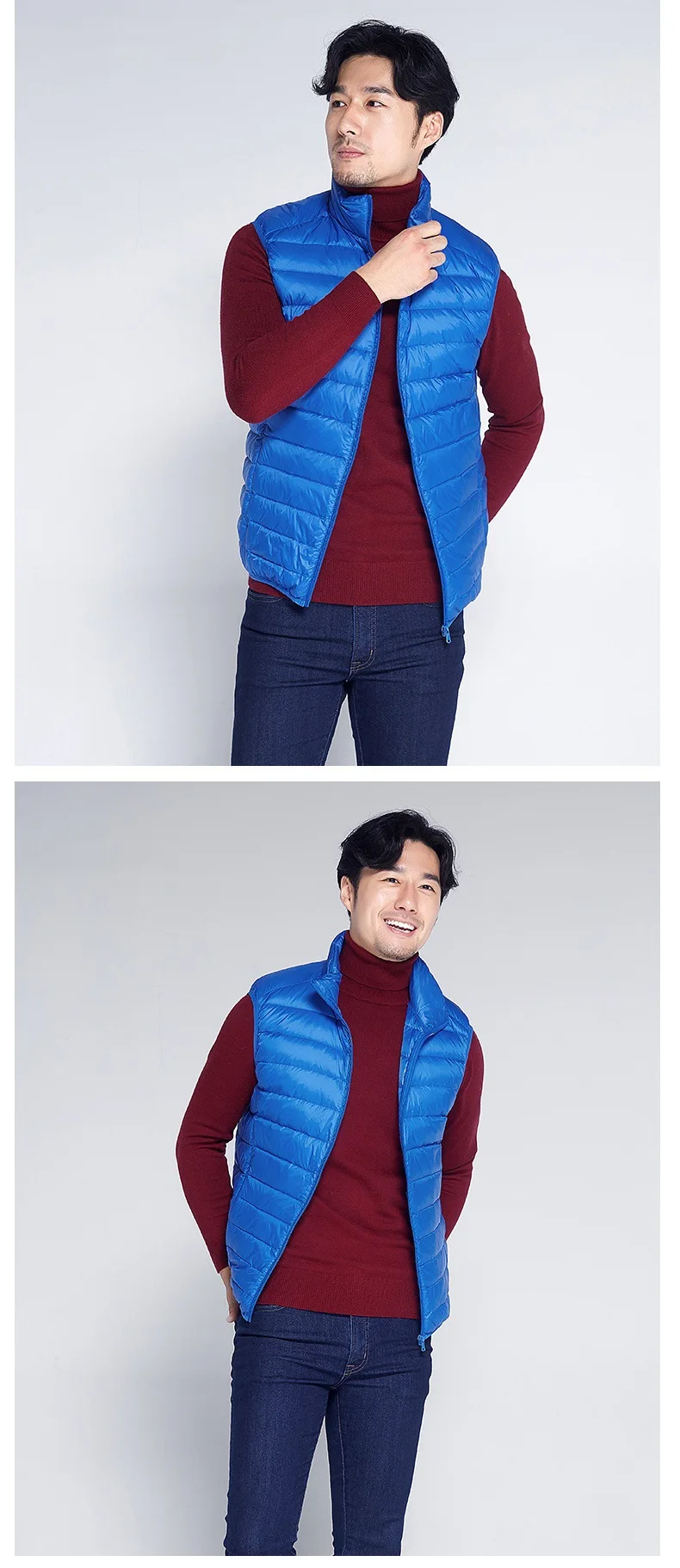 Tide модные брендовые мужские куртки без рукавов, Сверхлегкий зимний жилет на белом утином пуху, мужской тонкий жилет, мужской ветрозащитный Теплый жилет