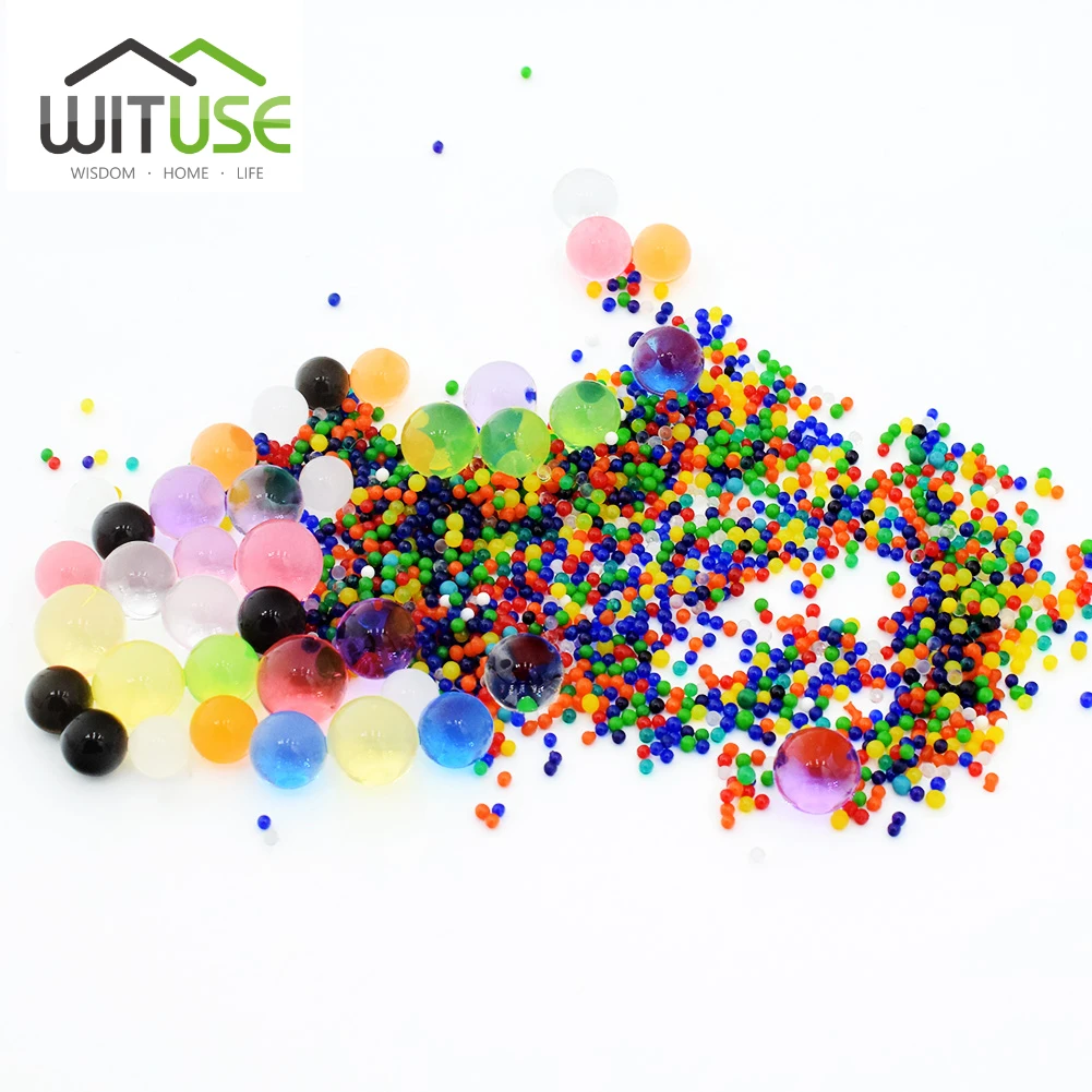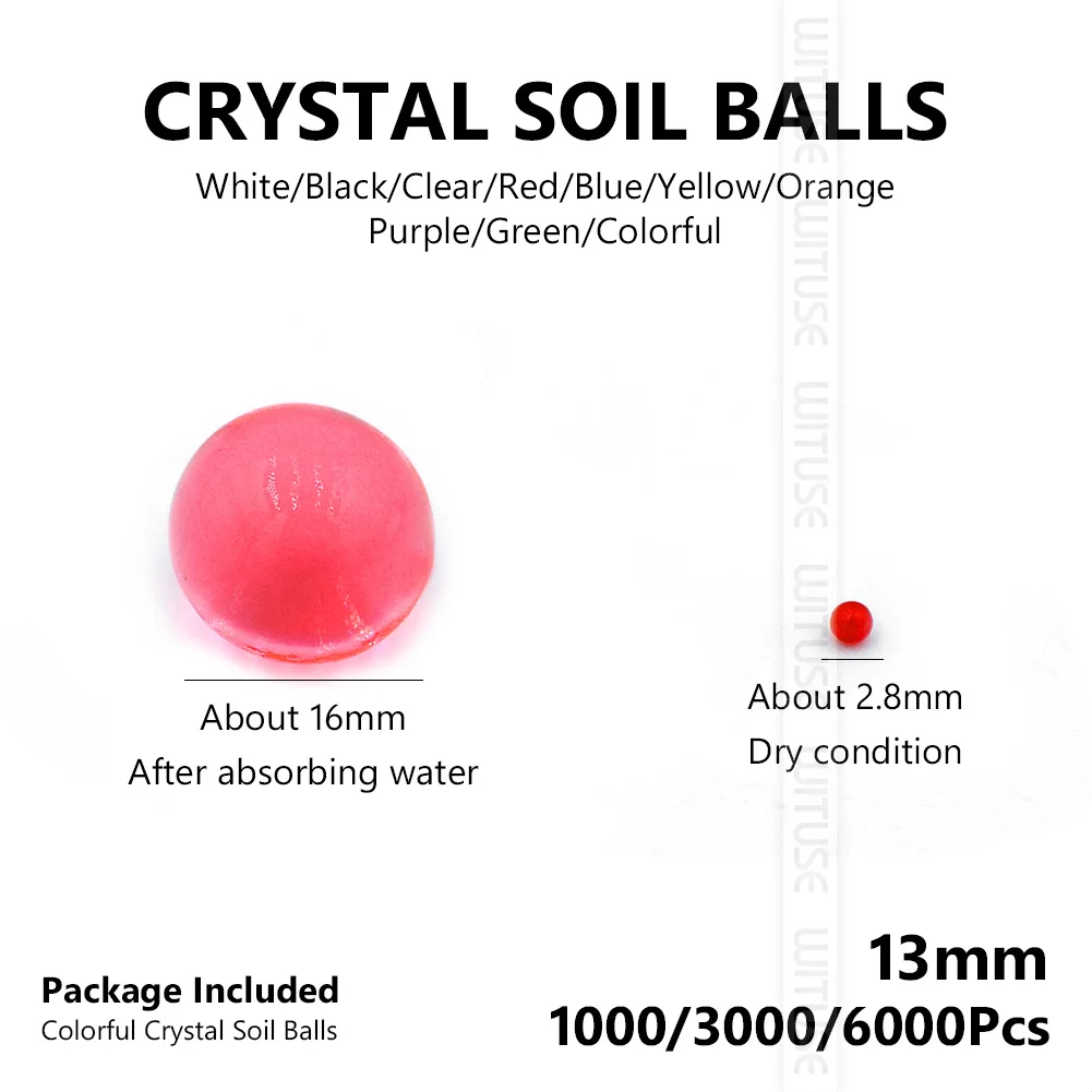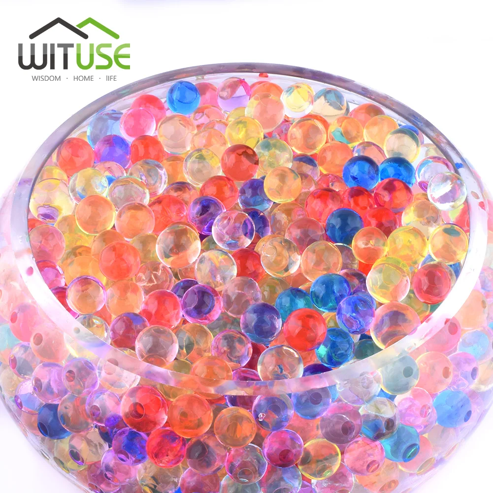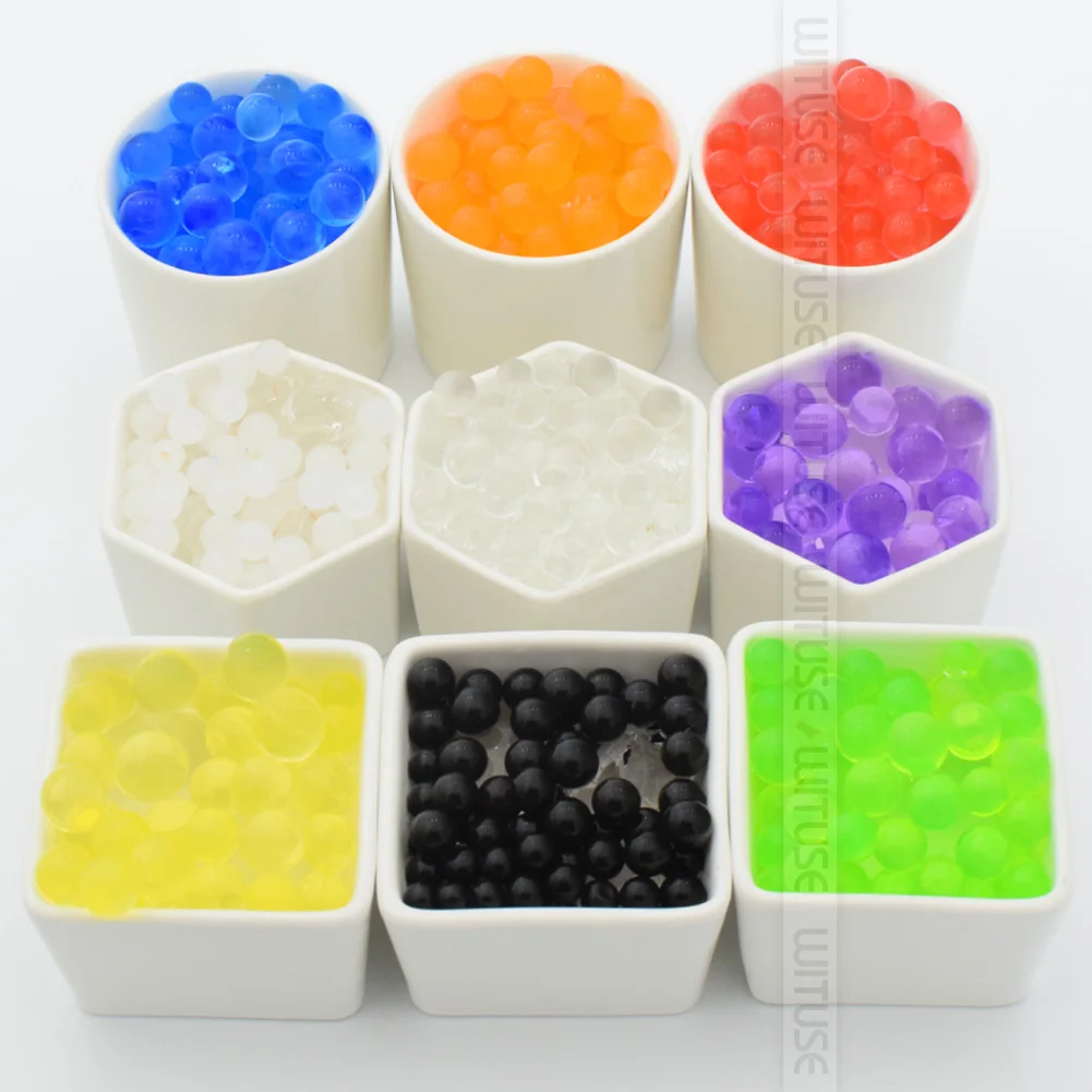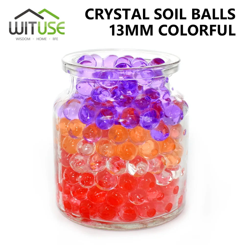 Каждая Хрустальная почва 10 граммов поглощает по крайней мере 1 литр воды и может заполнить около 1 литровая ваза. Каждая бусина будет расширяться до 1,3 ~ 1,6 см в диаметре.
