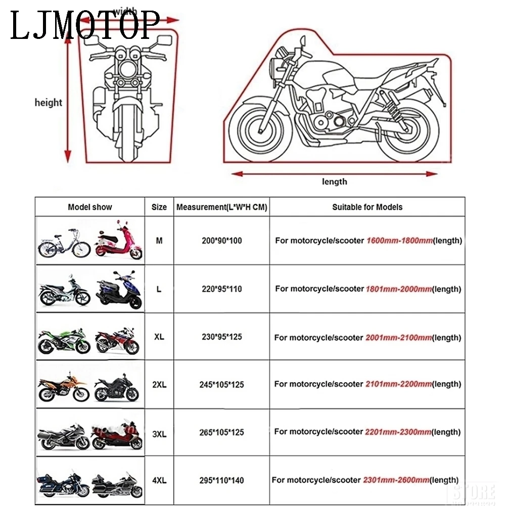 ①Если у вашего мотоцикла есть ветровое стекло или седельная сумка, чехол может не идеально подойти. Пожалуйста, проверьте размер.