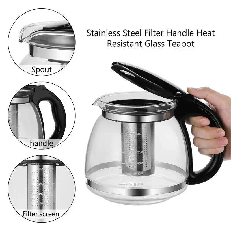 Отзывы о Стеклянный чайник для чая 1500 мл/2000 мл бытовой термостойкий стеклянный с фильтром