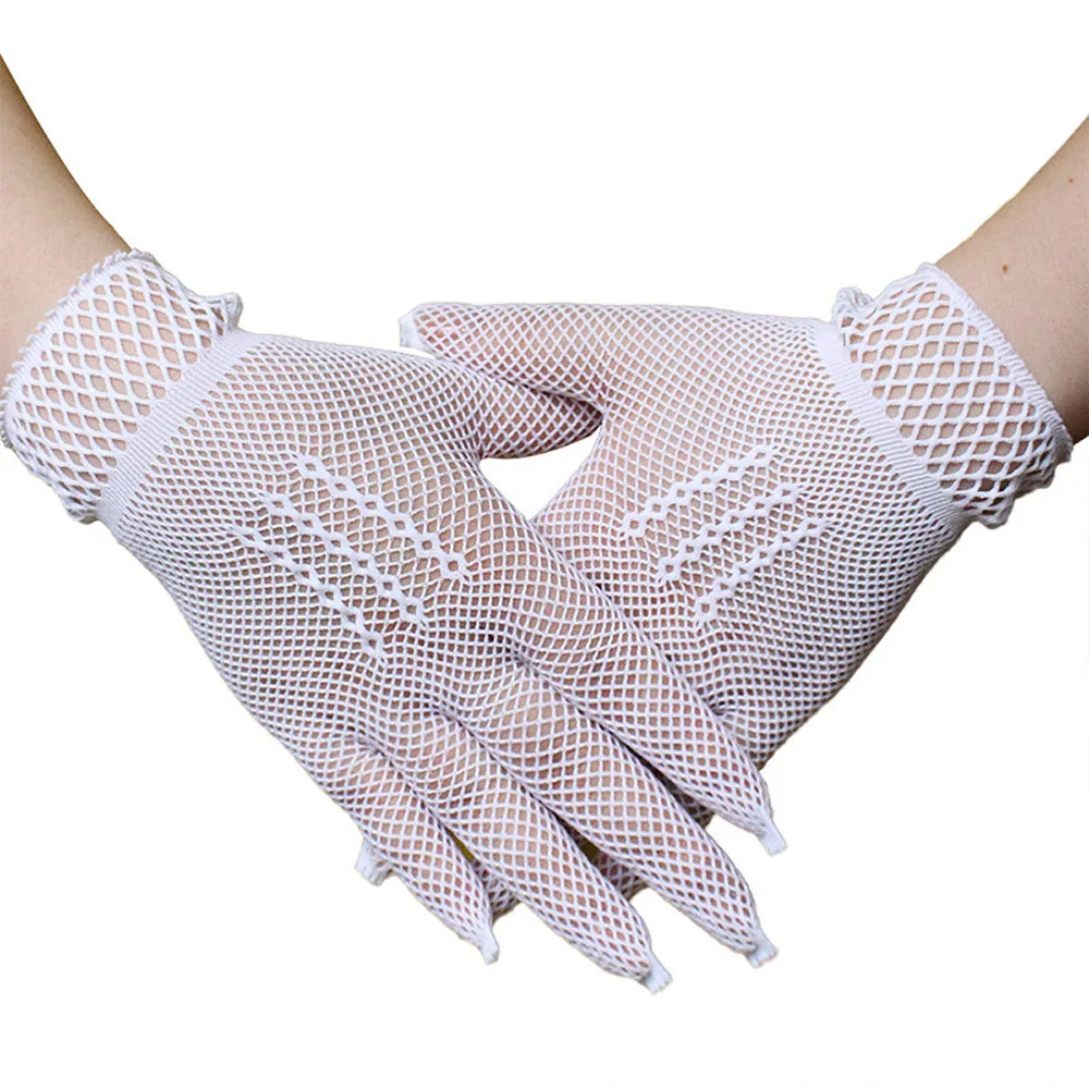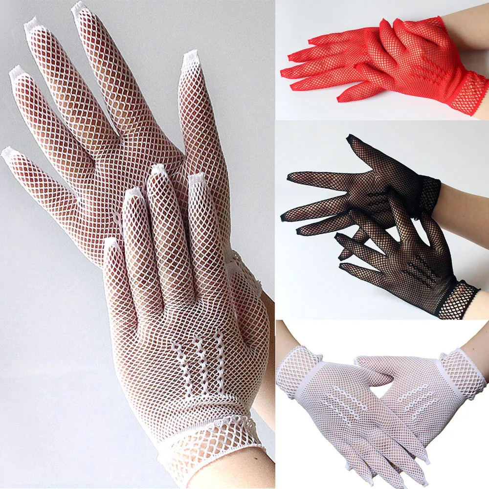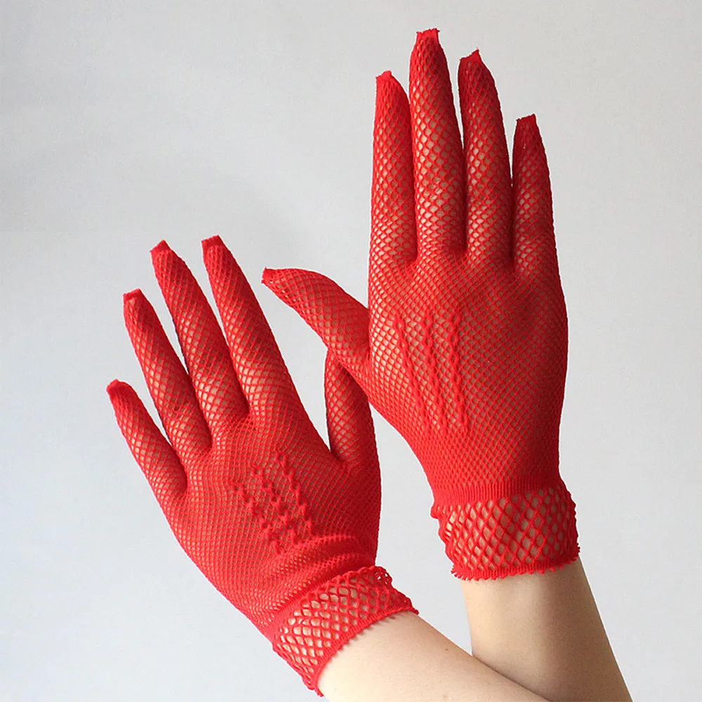 Женские неоновые сексуальные короткие кружевные эластичные перчатки без пальцев в сетку