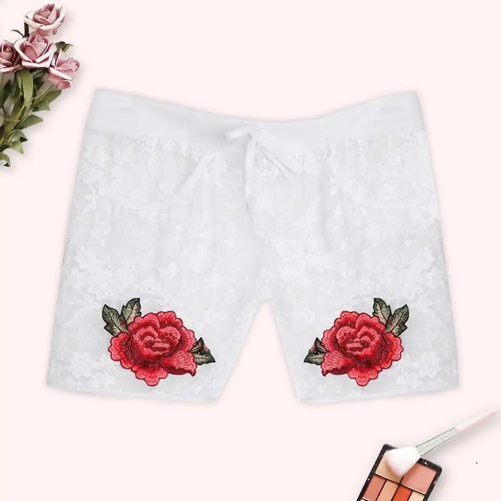 Женские кружевные шорты для сна размера плюс, Модная Удобная Сексуальная Повседневная Домашняя одежда с вышитыми цветами, Pantalon Pijama, новинка 2019