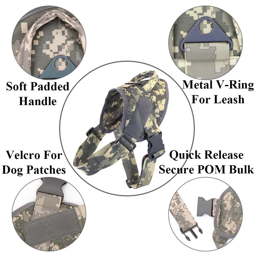 Дизайн ручки. Верхняя часть тактического жилета для собак имеет v-образную пряжку и ручку, прикрепленную к собачьему поясу, чтобы облегчить лучший контроль и обучить вашу собаку ходить рядом с вами.