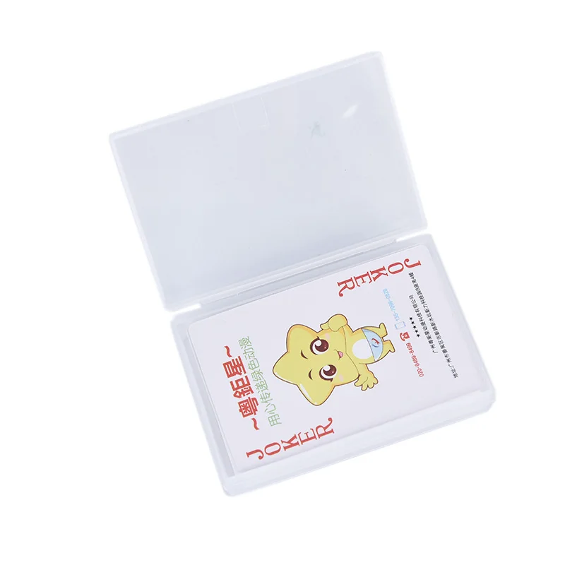 "Особенность: Тип: коробка для игральных карт Цвет: прозрачный Размер: 9.5x6.4x2.2см Вес: 47 г Материал: пластик Кол-во: 2 шт. Посылка включает в себя: 2 шт. игральные коробки для карт"