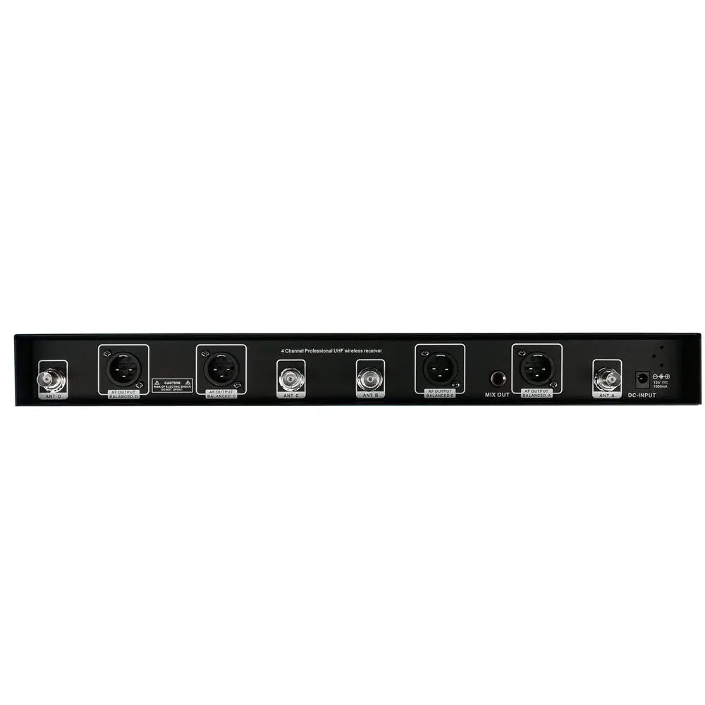 Регулируемая Частота! 4x200 каналов! Эта беспроводная микрофонная система обеспечивает отличное качество звука и профессиональные функции. Он предназначен для широкого спектра профессиональных приложений с 4x200 выбираемыми частотными каналами, автоматическим сканированием частоты, реальным разнообразием работы, системой блокировки тона, автоматической настройкой передатчика. Это идеально подходит для профессионального использования на любом вечере. Особенности ЖК-дисплей с подсветкой, показывающей уровень RF, уровень AF, частоту канала и статус отключения звука. 200 частоты выборки на каждом канале, несколько единиц могут использоваться одновременно Вариативность работы для увеличения диапазона/надежности, снижения отсева. Встроенный замок блокировки для защиты цепи от радиочастотных помех Автоматическая Настройка передатчика, каналы передатчика и приемника легко синхронизируются Четыре канала приемника, Четыре микрофона могут использоваться одновременно Четыре XLR выхода и один 1/4 "смешанный выход Индивидуальный регулятор громкости на каждом канале Частота: uhf 770 МГц до 800 МГц Частотный диапазон: 35 Гц ~ 18 кГц Срок службы батареи: 12 часов (батарейки АА) Диапазон: до 300 футов Полка для монтажа, подходит для 19 "стоек Посылка с вышивкой крестом включает в себя: (1) Четыре канала Диапазона UHF приемника (4) ручные микрофоны (1) аудиокабель 1/4" (1) Универсальный адаптер ac-cd 110-240 V 1) Руководство пользователя