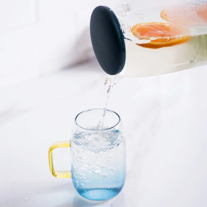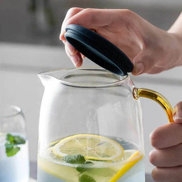 3. Многоцелевой:Этот кувшин для сока 1400 мл, вы можете вместить свои любимые напитки, такие как молоко, красное вино, холодная вода, сок, горячий кофе, будь то горячие напитки или холодные напитки, эта стеклянная бутылка для воды подходит.