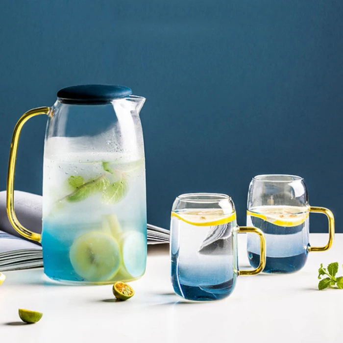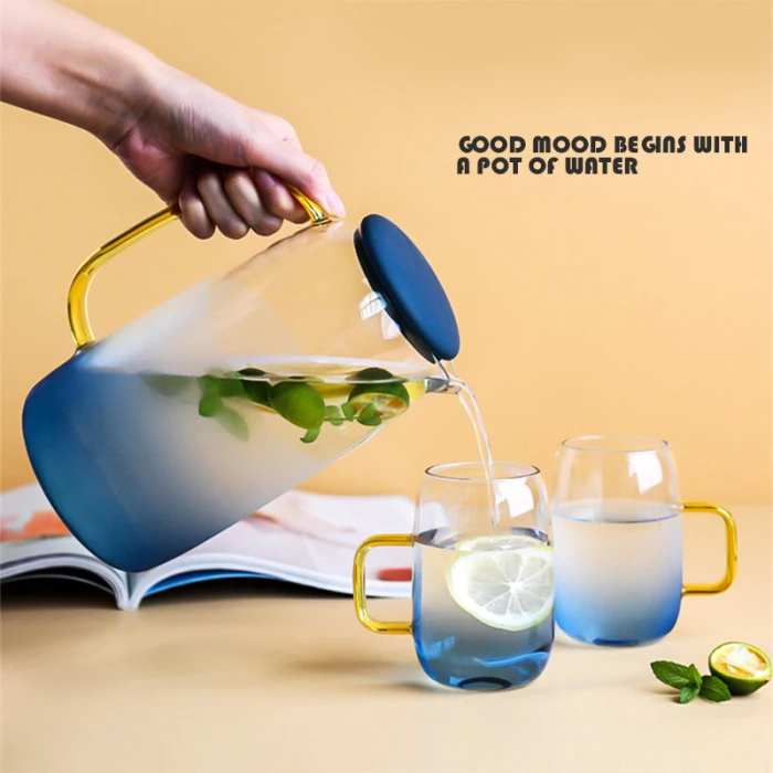 1. Высокий боросиликатный чайник:Эта чашка для воды изготовлена из первоклассного боросиликатного стекла. Это безопасно и Экологически безопасно. Поверхность неровная молоткоподобная. Это красивый стеклянный горшок, достаточно, чтобы служить вашей семье или развлечь ваших гостей.