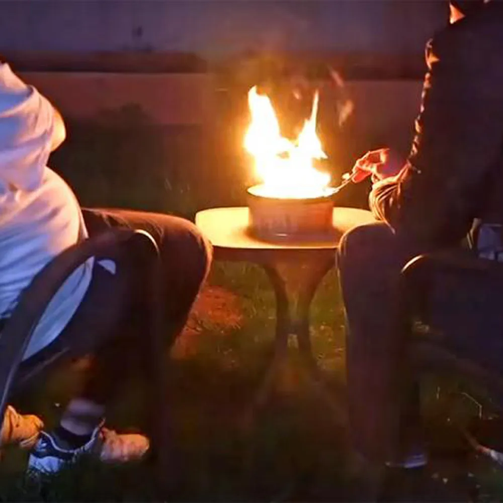 Портативный костр имеет экологически чистые и переработанные бумажные брикеты в пределах соевого воска.