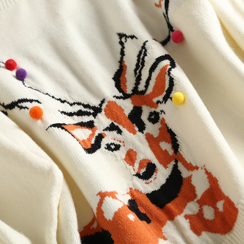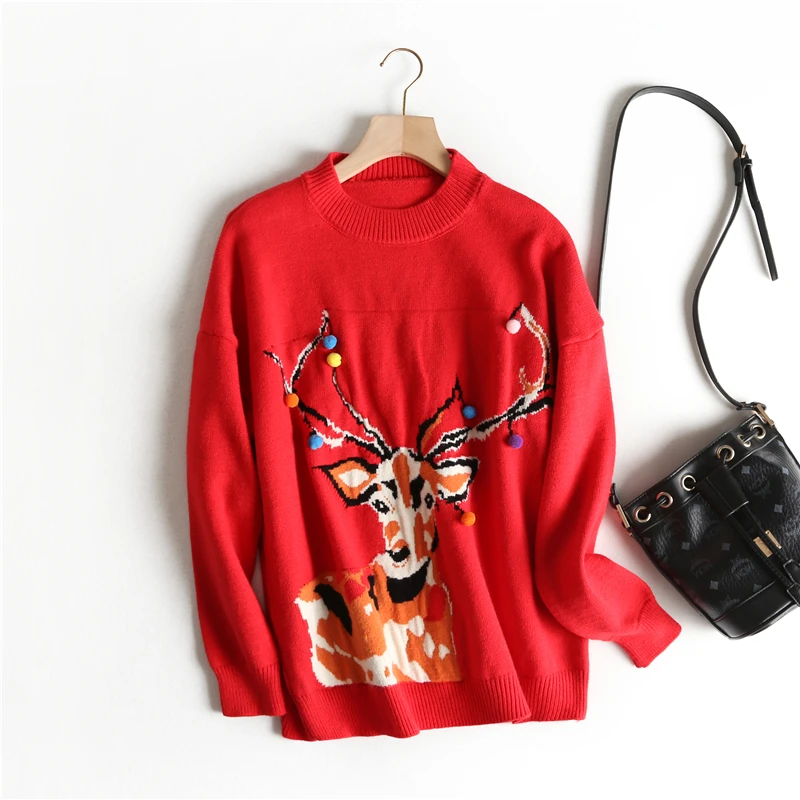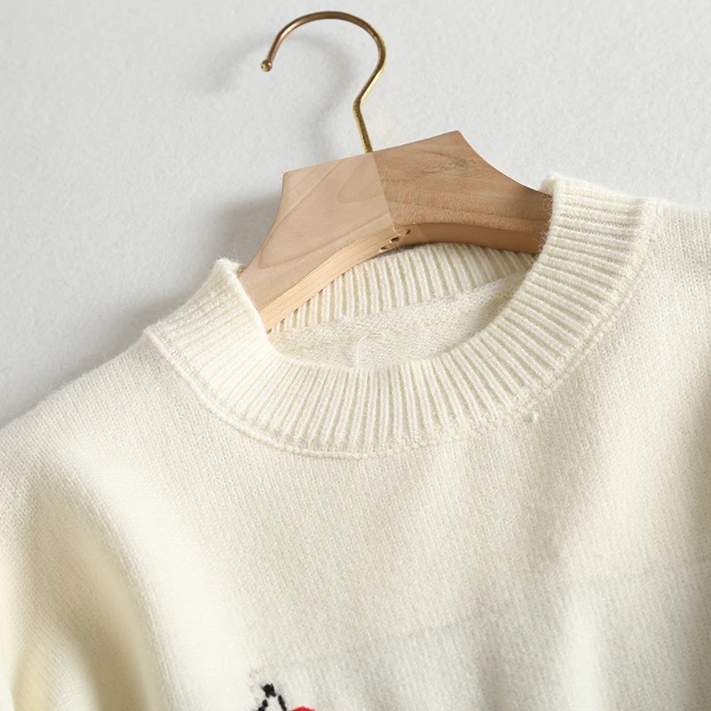 Отзывы о Женский свитер с вышивкой H.SA красный теплый в стиле ретро героями мультфильмов
