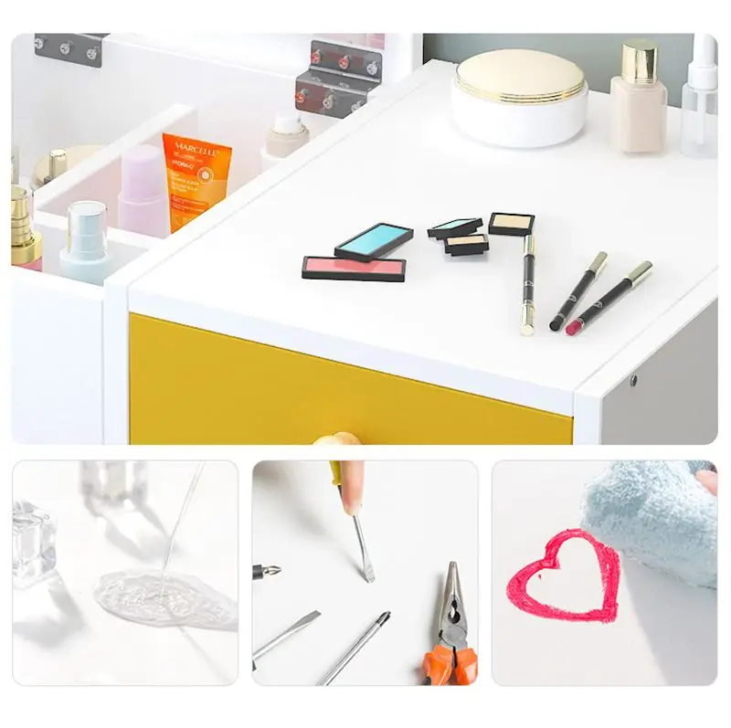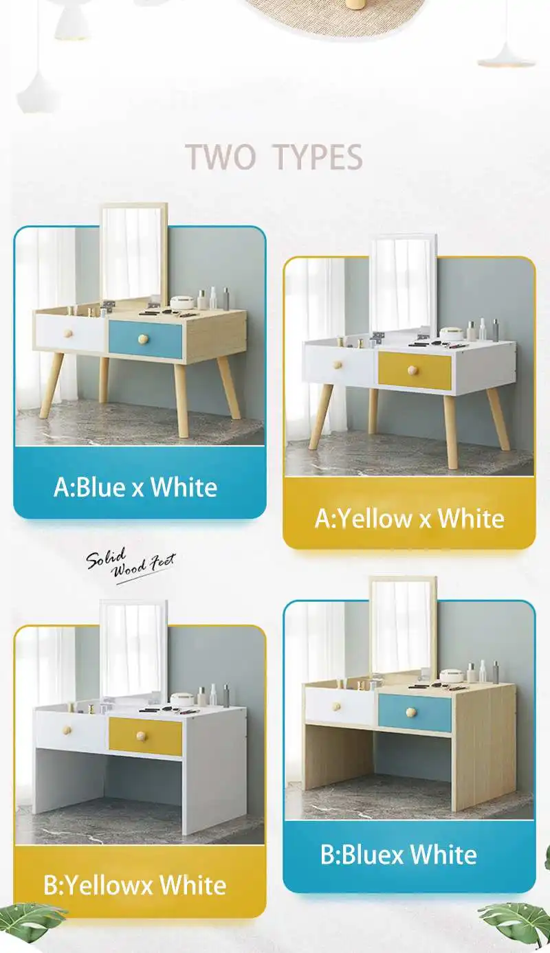 Вы ищете высококачественный и модный туалетный столик, сейчас мы рады поделиться с Вами этим зеркальным туалетным столиком. Этот туалетный столик состоит из зеркала, трех ящиков для хранения, двух ящиков, простых ножек. Изготовлен из высококачественного материала MDF, он прочный и прочный для ежедневного использования. Зеркала и ящики для хранения в верхней части туалетного столика можно снять, так что вы также можете использовать его в качестве стола. Удобная сборка, поэтому вам просто нужно установить его часть! С уникальным металлическим выдвижным ящиком и изысканными гравировальными узорами, это также будет хорошим домашним украшением!