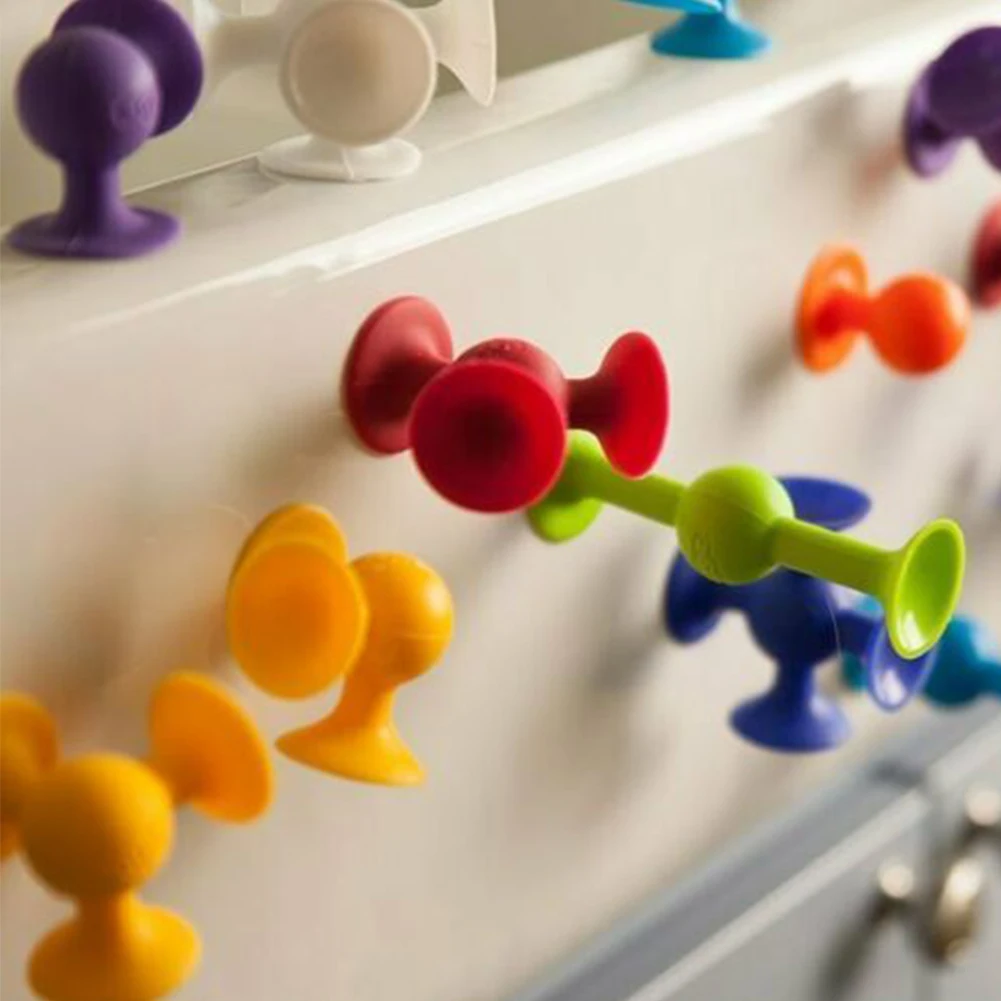 Присоски соединяются друг с другом и с любой твердой, непористой поверхностью.