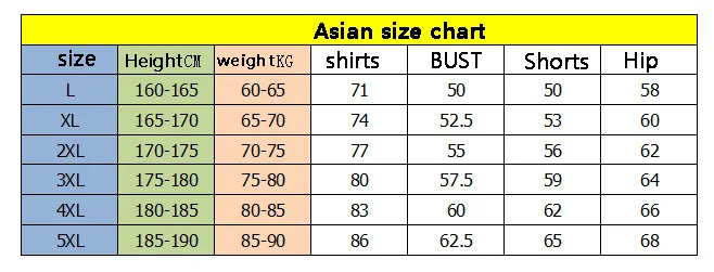 Трикотажные изделия имеют Азиатский Размер, они соответствуют европейским и американским размерамАзиатский размер L для роста 160-165 см вес 45-55 кг,Азиатский размер XL на рост 165-170 см вес 55-60 кг,Азиатский размер 2XL на рост 170-175 см вес 60-70 кг,Азиатский размер 3XL на рост 175-180 см вес 70-80 кг,Азиатский размер 4XL на рост 180-185 см вес 80-85 кг,Азиатский размер 5XL для роста 185-190 см вес 85-90 кг.Азиатский размер 6XL для роста 190-199 см вес 90-99 кг.![]()