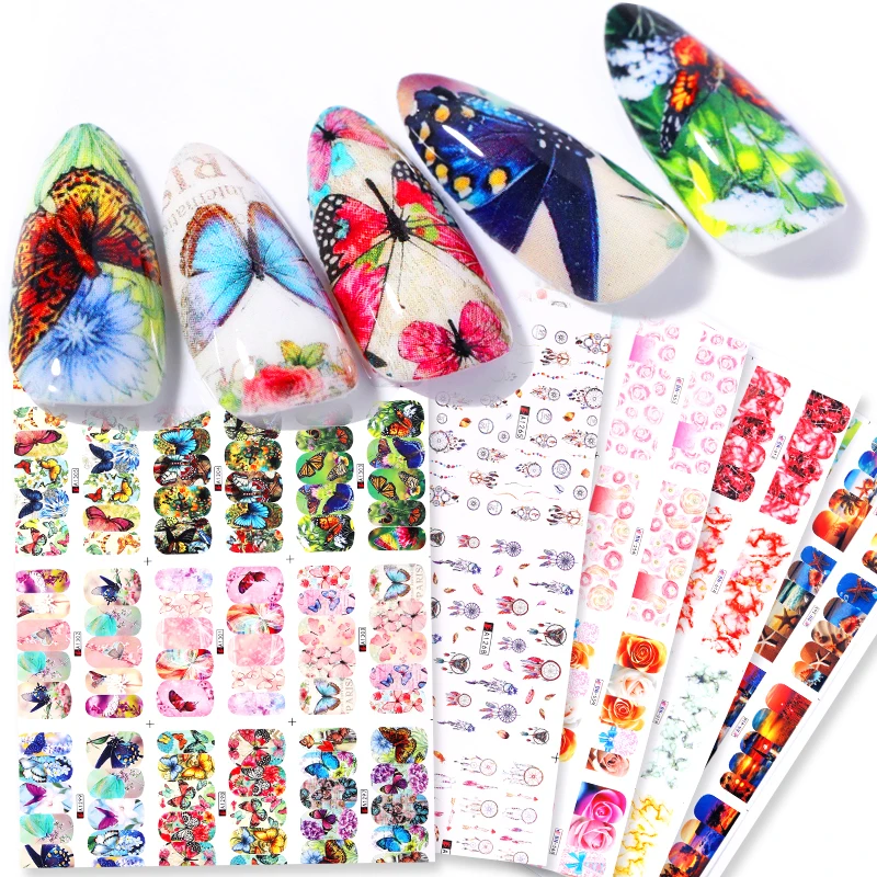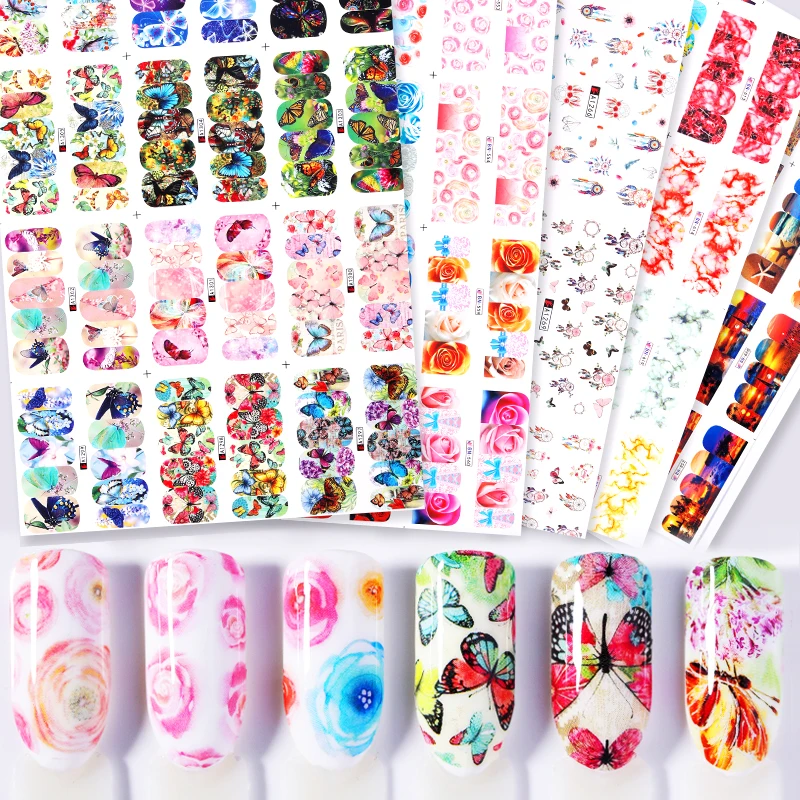 Отзывы о 12 узоров большой лист водная наклейка Бабочка Цветок смешанные узоры цветные