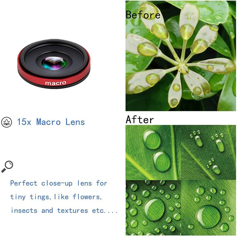 Рыбий глаз, широкий угол и макрообъектив-эти маленькие линзы прикручиваются вместе для удобного хранения, супер широкий угол и макро и HD Рыбий глаз объектив и макро объектив, также просто откручивается; широкоугольный объектив позволяет запечатлеть большие сцены, такие как городская сцена и групповая съемка; Макро-объектив захватывает удивительные крупным планом, как цветы; Рыбий глаз объектив создает забавные круговые фотографии, заставит вас влюбиться в фотографии