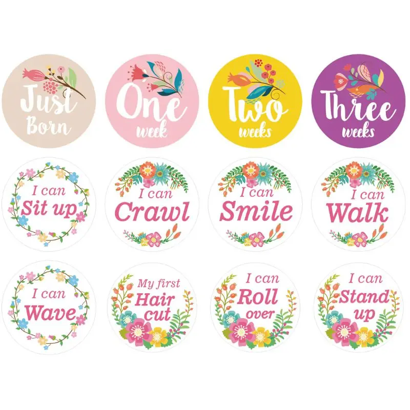 Прекрасный Круглый месяц стикер, чтобы записать ваш ребенок ежемесячный рост и изменения.