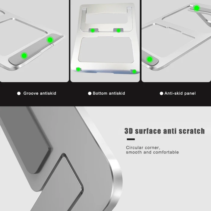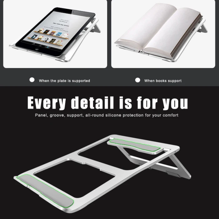 1. Ультратонкая Складная подставка для ноутбука, эргономичный угол подъема защищает пользователя от шейного отдела позвоночника и здоровья глаз.