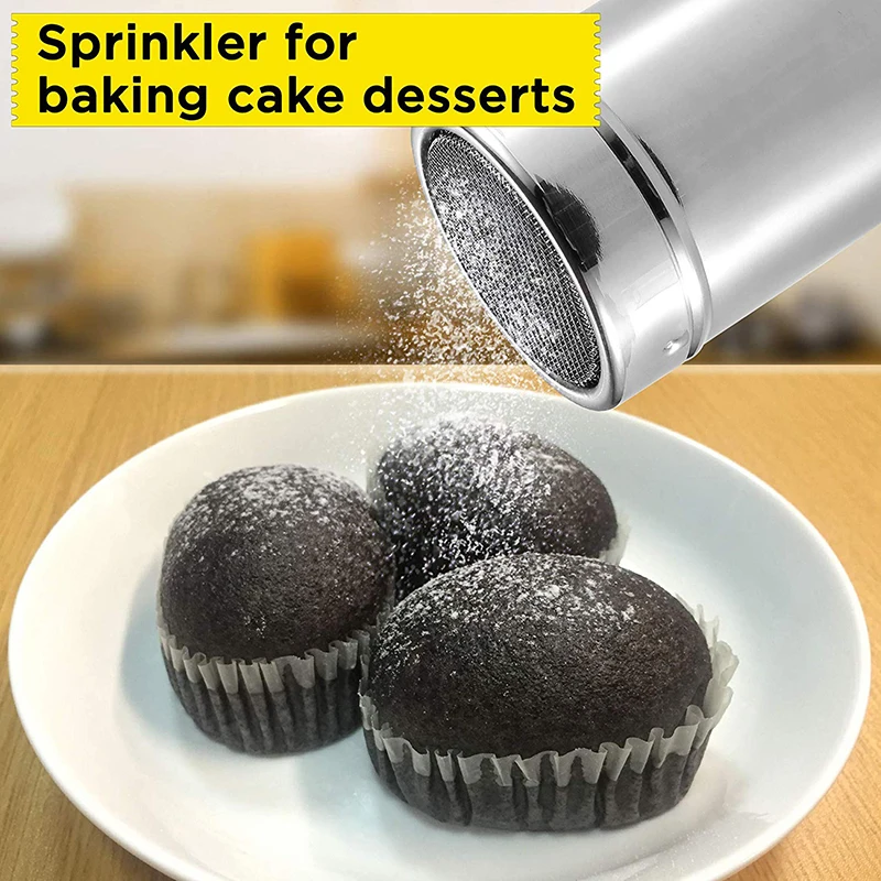 Хороший материал и отличный дизайн 304 материал из нержавеющей стали, шейкер для порошка может связаться с едой напрямую. ABS Пыленепроницаемая крышка блокирует влагу в воздухе, сохраняет остаток порошка сухим и свежим.