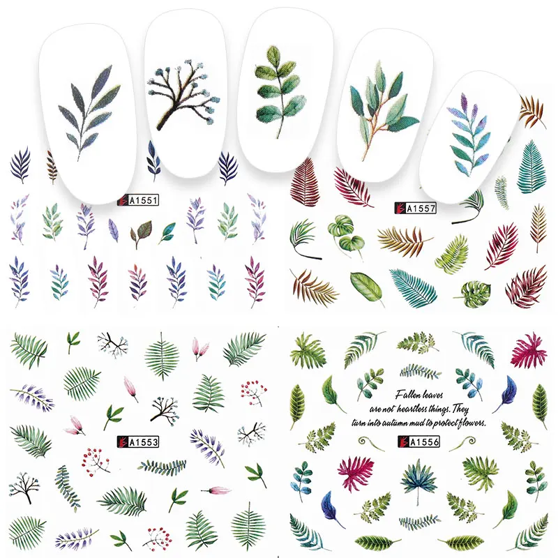 Отзывы о Наклейка для ногтей HNUIX простой летний декоративный стикер с зелеными цветами