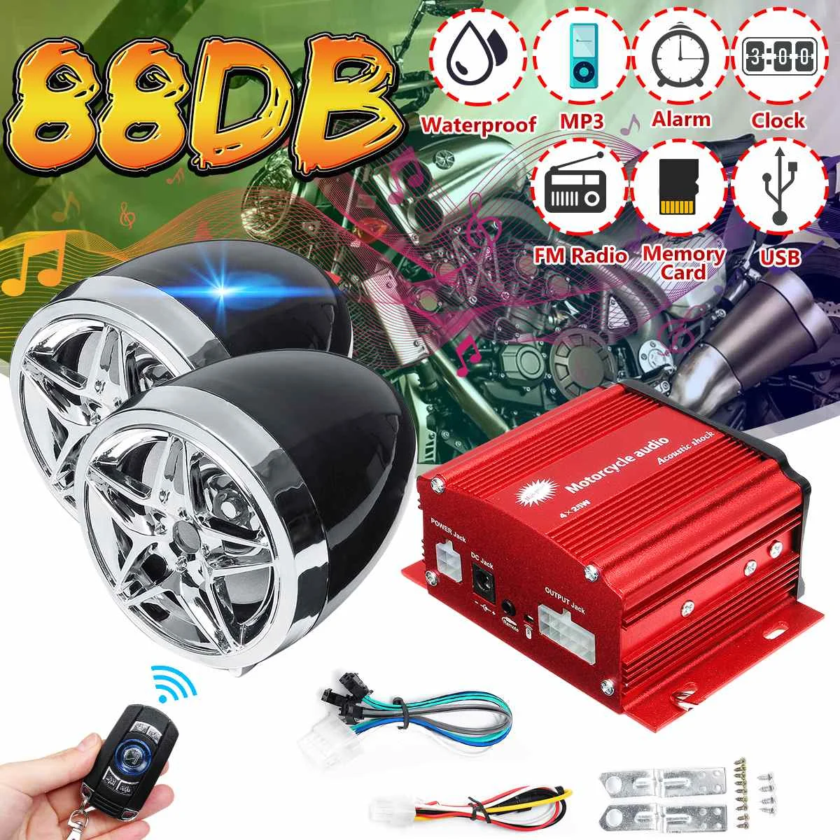 Противоугонный 88дб мотоцикл аудио mp3-плеер Будильник FM USB bluetooth динамик