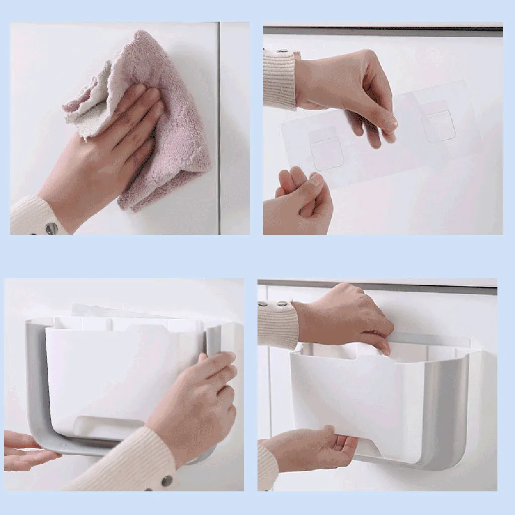 - Подвесной шкаф мусорный бак: мусор можно повесить на кухонные двери, двери шкафа, кухонные двери, ящики, автомобили или где-либо еще. Толщина двери должна быть менее 2,2 см.
