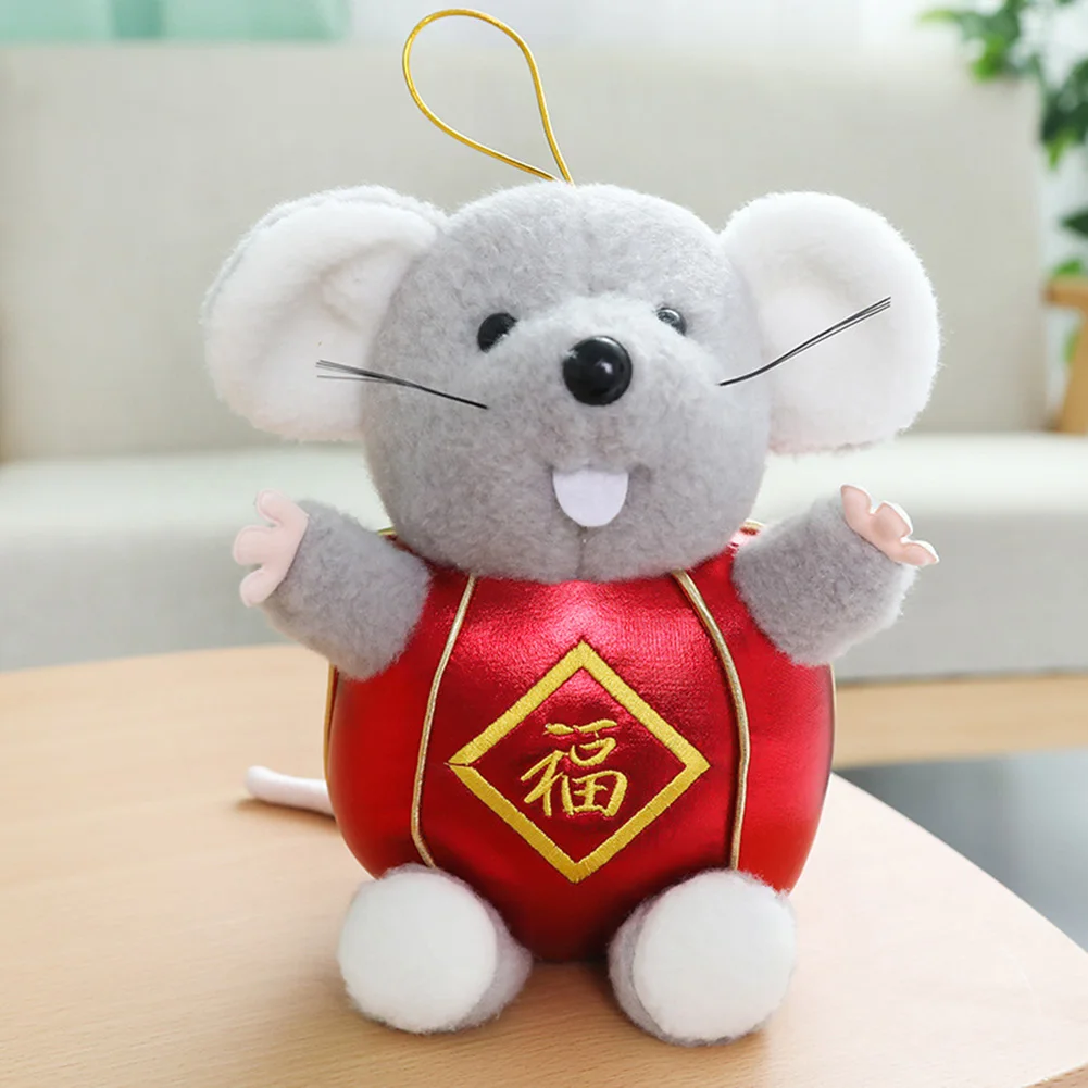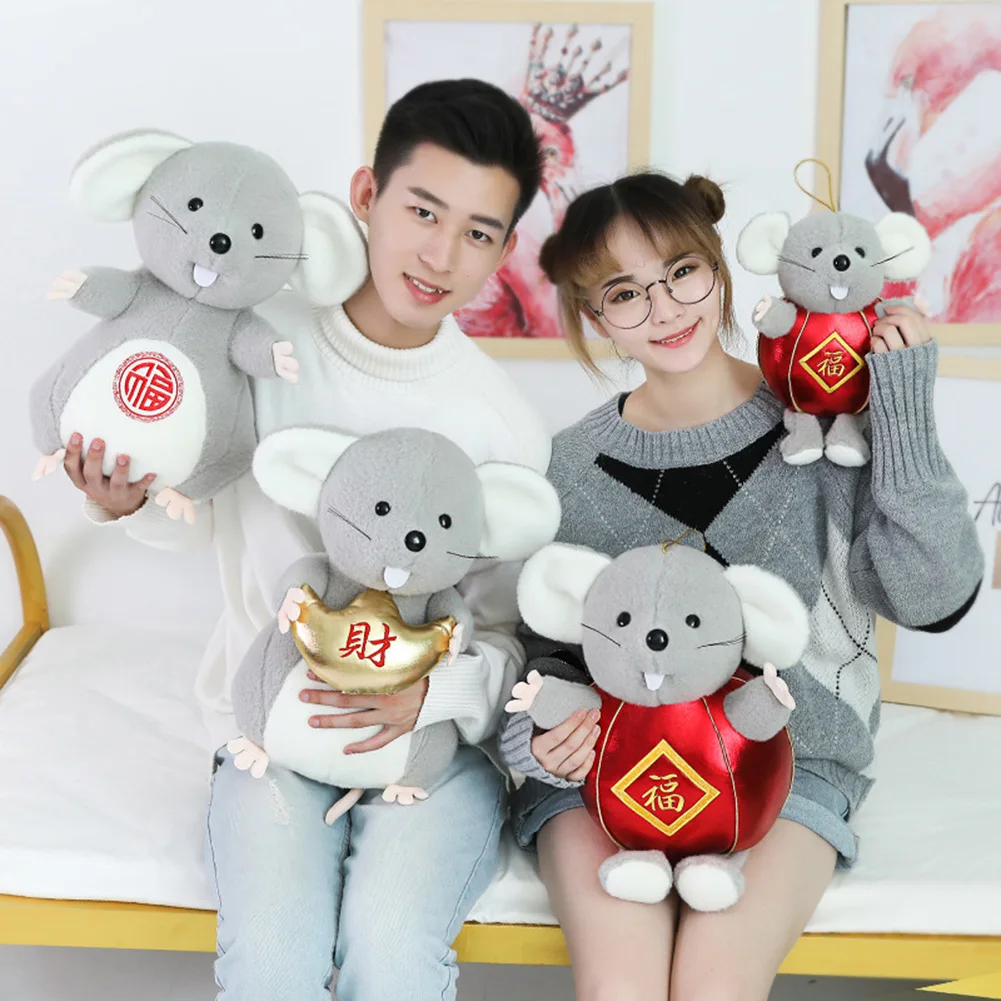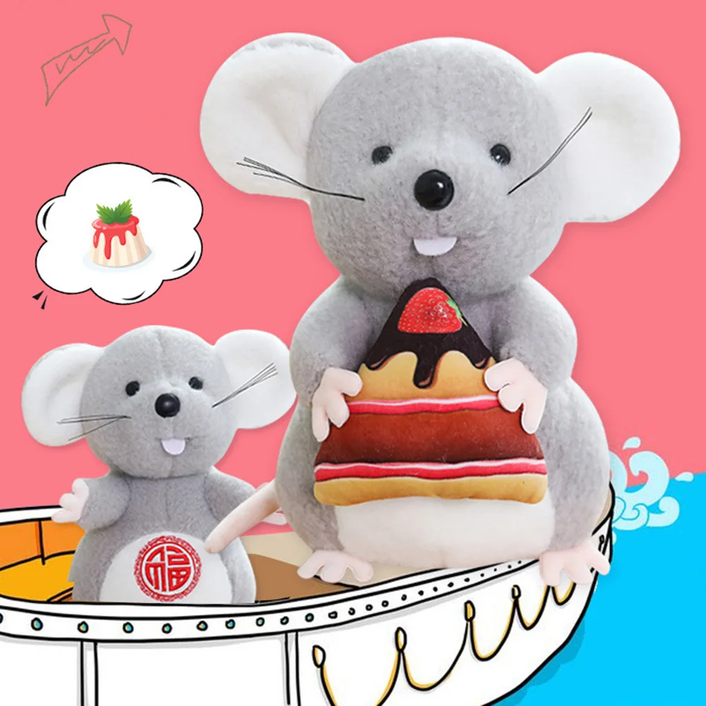 Милая плюшевая кукла в форме мыши с красным конвертом/дизайном торта, полная китайской новогодней радостью.