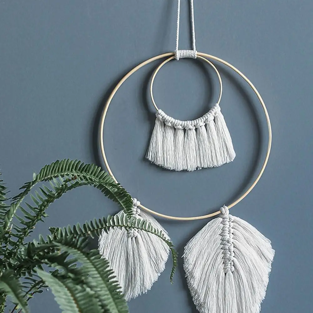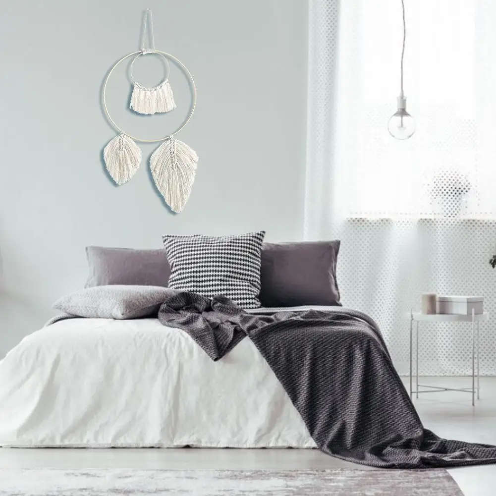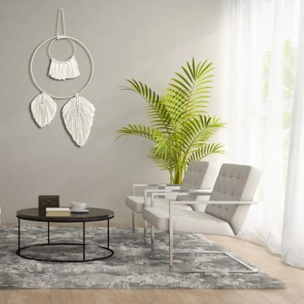2. Качественный материал: железное кольцо, хлопковая веревка. Великолепный, прочный и экологически чистый декор, подходит для использования в помещении. Красивые, оригинальные настенные подвесные макраме, отлично подходят для свадебных церемоний, дней рождения или простого богемного украшения стен.