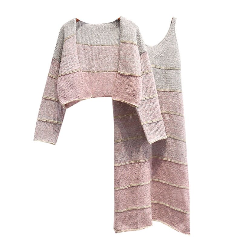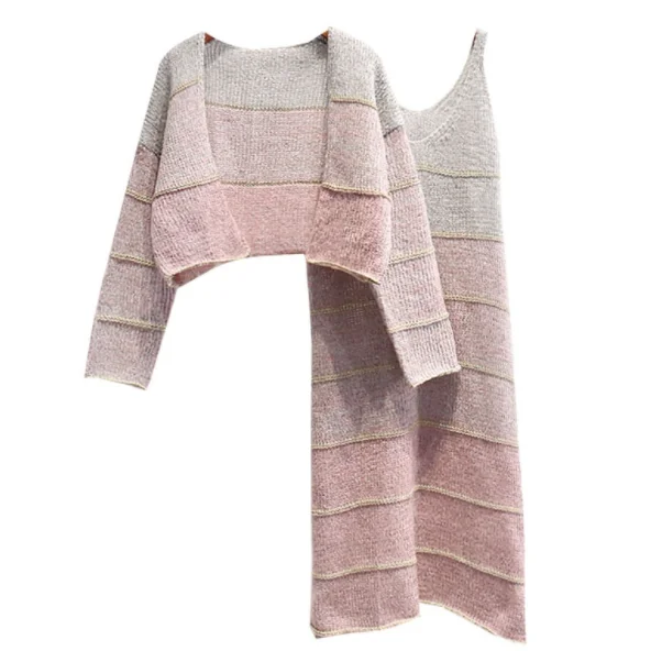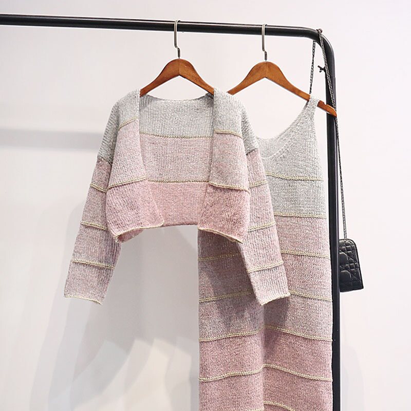 Отзывы о Женский трикотажный комплект из 2 предметов облегающее платье-свитер и жакет