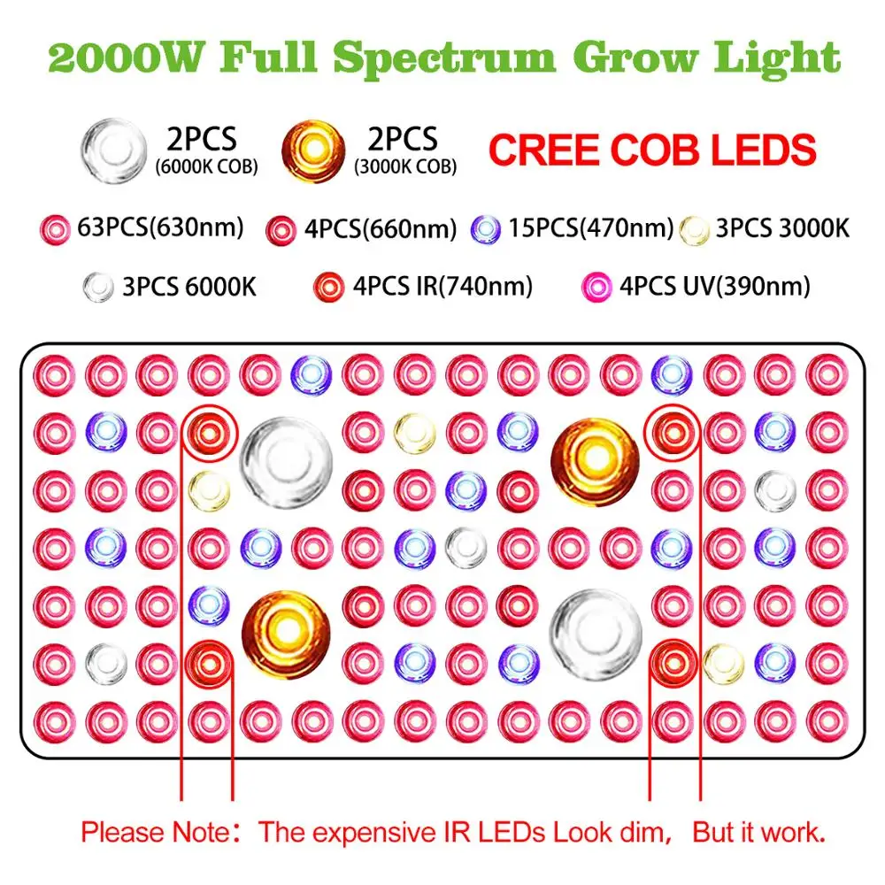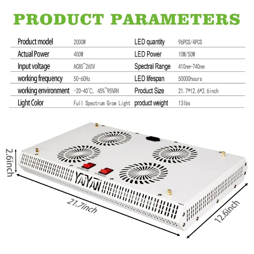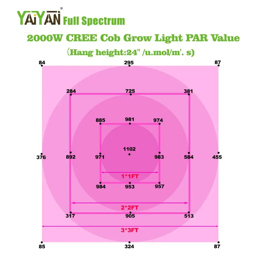 Отзывы о Светодиодный светильник для выращивания растений YAIYAN серия CREE Cob 2000 Вт полный