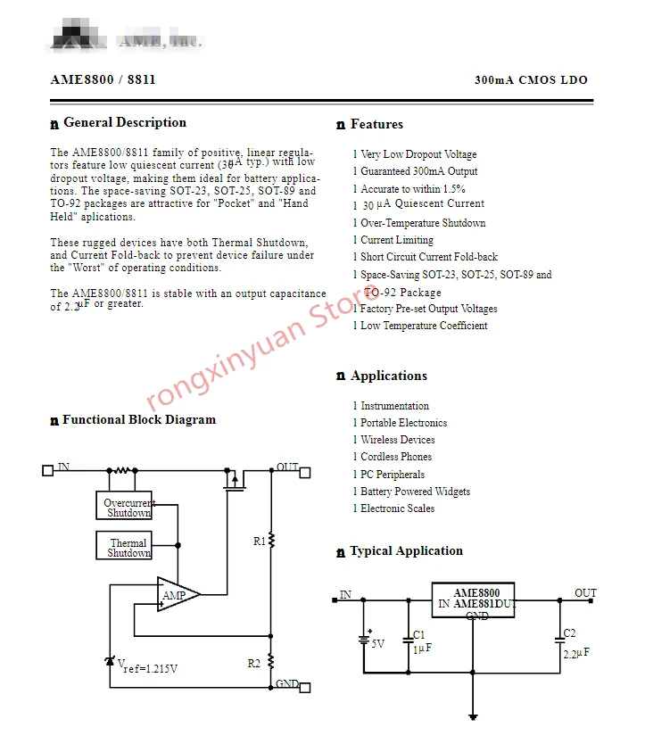 AME8800AEFTZ AME8800AEFT 3,3 V SOT-89 300mA CMOS LDO оригинал новый 100% качество