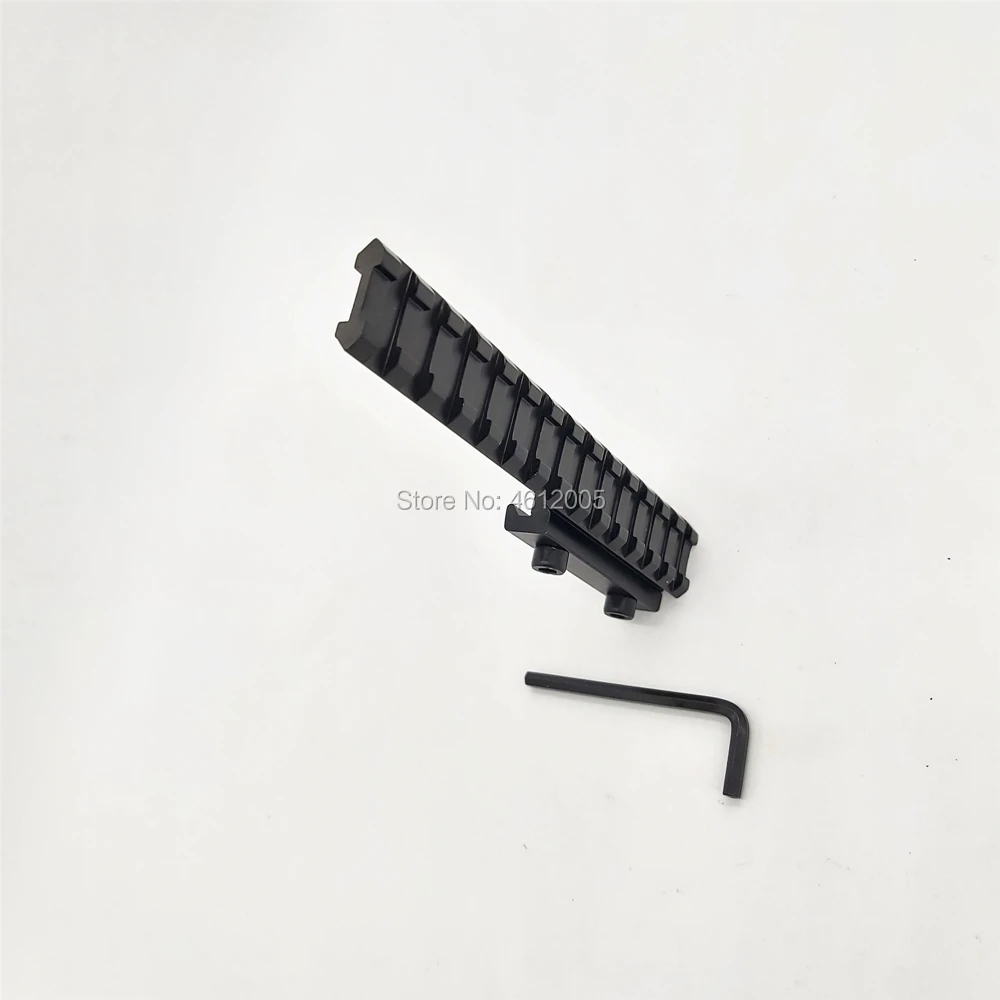 Крепление для тактического рельсового адаптера Picatinny • Изготовлен из авиационного алюминиевого сплава с матовым черным покрытием • Верхняя направляющая длиной 155 мм (14 слотов) с 14 слотами и V-образным вырезом