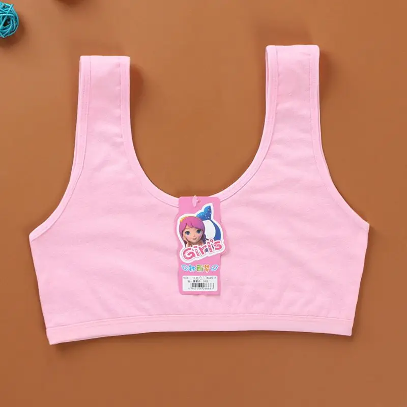 Спортивный бюстгальтер для девочек-подростков; Милое однотонное Двухслойное дышащее детское хлопковое нижнее белье ярких цветов; Беспроводное нижнее белье