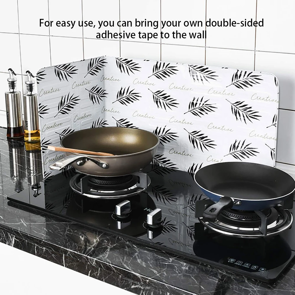 Защита от брызг масла проста в установке. Вы можете просто сложить каждую складную часть под углом градусов, чтобы сделать ее стоящей на печи. И если вы хотите, чтобы он разворачивался и закрывался на стену, вам нужно подготовить дополнительную двойную наклейку или ленту, чтобы зафиксировать ее.