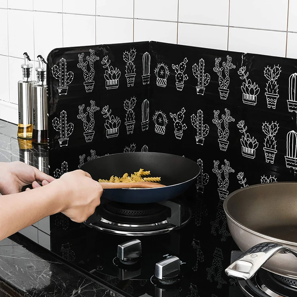 Защита от брызг масла отличается красивыми задними и белыми узорами. Вы можете выбрать два типа: милый кактус и Классический рисунок листьев.