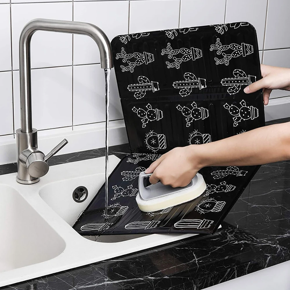 Защита от брызг масла проста в установке. Вы можете просто сложить каждую складную часть под углом градусов, чтобы сделать ее стоящей на печи. И если вы хотите, чтобы он разворачивался и закрывался на стену, вам нужно подготовить дополнительную двойную наклейку или ленту, чтобы зафиксировать ее.