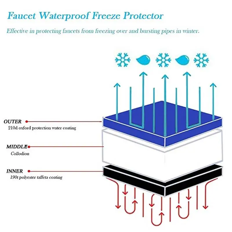 Водонепроницаемый внешний вид из Оксфорда, защитное покрытие для воды на внешней поверхности, середина заполнена хлопком, эффективно сохраняет кран сухим и теплым во время влажной среды