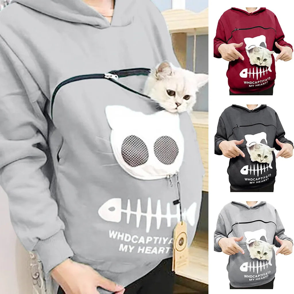 Women's Sweatshirt Animal Pouch Hood Tops Carry Cat Breathable Pullover BlousePlease check the Size Chart before order. If you are not sure the size, please send message to us.