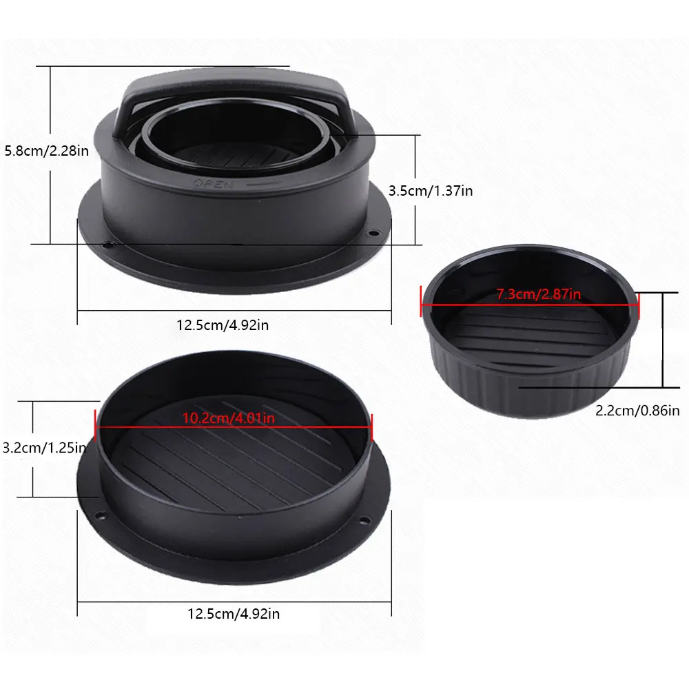 Антипригарные поварские мясорубки, форма для гамбургера, пресс-держатель, контейнер, кухонный инструмент для приготовления пищи Особенности: 3 в 1 производитель гамбургеров, профессиональное устройство дизайна, имеет 3 различные функции. Три основных функции раздельного прессования гамбургеров-это дополнительная мини-форма для гамбургеров, инновационный дизайн, лучший гамбургер для наполнения и съемный низ, сохраняя пирог в той же форме, что и в вашей форме. Не липкие покрытия-попросту говоря, специальные материалы для печати гамбургеров могут создать гамбургерские формы и не нужно беспокоиться о их удалении. Мясо не будет прилипать к прочному, не липку к BPA пластику. Например, алюминиевый инструмент для бургера требует дополнительных пирогов или некоторых инструментов, чтобы удалить пирог из формы. Уникальный и инновационный дизайн-самый простой способ приготовления гамбургеров. Наш бренд предлагает лучшие и уникальные многофункциональные котлеты для гамбургеров. Как и другие продукты, дизайн, который мы производим, помогает вам удалить идеальный гамбургер с принтера для гамбургеров без использования вспомогательного кухонного инструмента, потому что он имеет съемное дно. Технические характеристики: Материал: АБС-пластик Размер: 125*125*60 мм Вес: 173 г