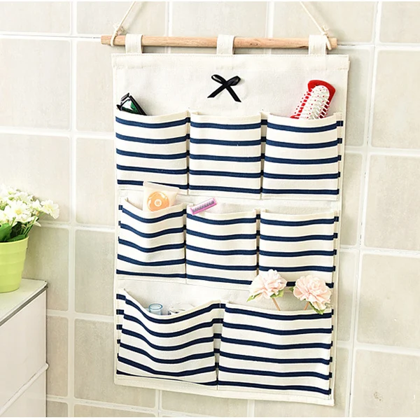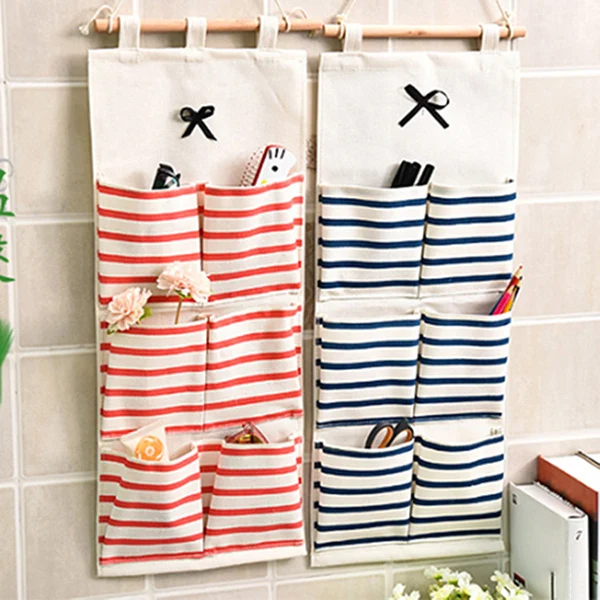 Отзывы о Полосатая настенная сумка для хранения из льна и хлопка с несколькими карманами
